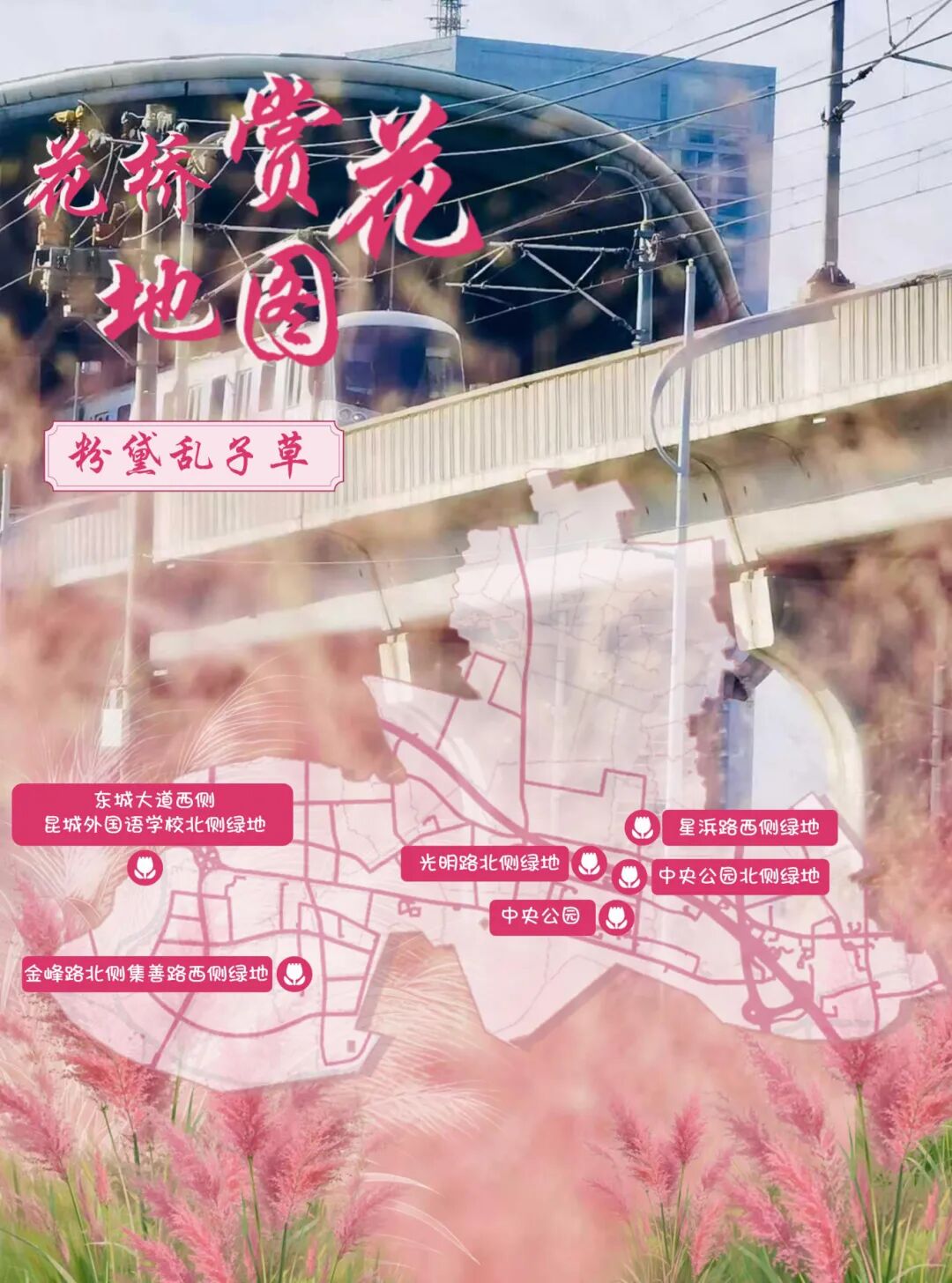 從光明路站出站后,便能邂逅這片治愈系花海。若站在花海向站臺(tái)遠(yuǎn)眺,更能捕捉到粉黛亂子草與軌道交通11號(hào)線(xiàn)同框的絕妙畫(huà)面,讓自然柔美與城市律動(dòng)在此刻完美交融。