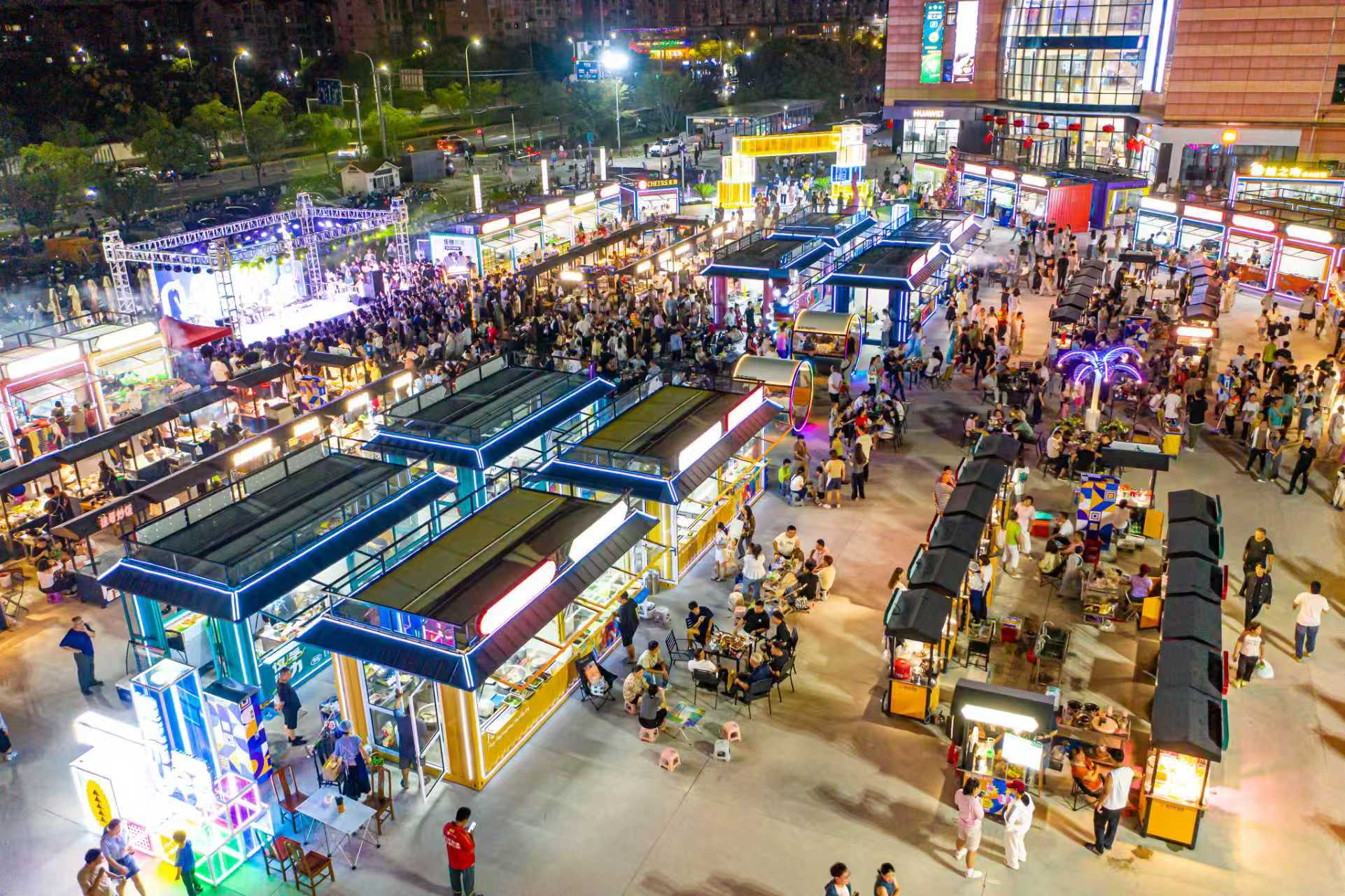 在廣泛征詢了攤主、市民和周邊單位的意見后,昆山高新區(qū)決定,由昆高新集團將距離美豐路南星瀆商業(yè)中心旁的一塊閑置空地,改造為新的“星夜市”,采用集裝箱造型,引進118家商戶。為此,昆高新集團精心組織、加班加點,奮戰(zhàn)一個月,完成夜市硬件等相關(guān)建設(shè),并制定了管理細則。