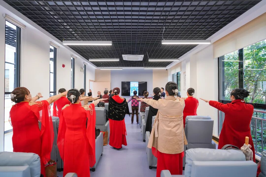 與此同時(shí),老年大學(xué)即將開啟,圍繞中心功能區(qū)精心定制多元課程,滿足不同興趣愛好。在舞蹈室學(xué)習(xí)廣場舞、形體操,鍛煉身體、提升活力;在手工書畫室參與剪紙、書法、繪畫等活動(dòng),陶冶情操、結(jié)交朋友;影音室定期舉辦影視鑒賞、智能手機(jī)使用等實(shí)用講座,幫助大家緊跟時(shí)代步伐,真正實(shí)現(xiàn)老有所學(xué)、老有所樂。
