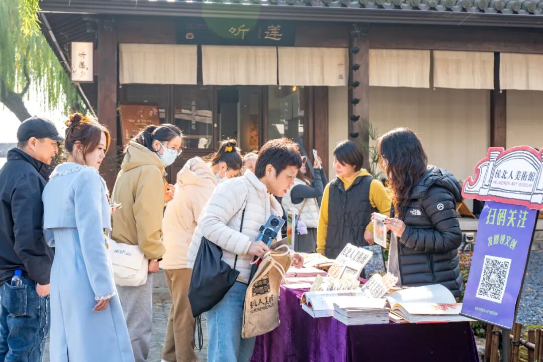 作為錦溪八景之一“蓮池結(jié)社”所在地,古蓮池名字已在這片土地上持續(xù)存在了800余年。藝術(shù)杯墊、冰箱貼、收納袋……當(dāng)天,在錦溪鎮(zhèn)支持下,昆山市侯北人美術(shù)館依托侯北人先生捐贈(zèng)的個(gè)人繪畫精品及珍藏的張大千、傅抱石等名家作品資源,走出固有展廳,在文昌閣下進(jìn)行“藝術(shù)擺攤”,向來(lái)往游客免費(fèi)派發(fā)10余款特色文創(chuàng)產(chǎn)品,將單純觀光轉(zhuǎn)化為可參與、可互動(dòng)的藝術(shù)體驗(yàn),提升旅游品質(zhì)。