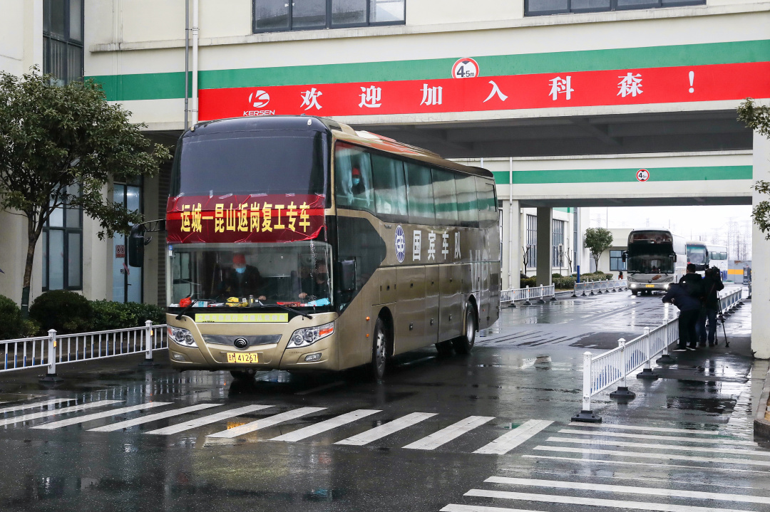 當(dāng)天下午兩點(diǎn)半,三輛標(biāo)有“運(yùn)城-昆山返崗復(fù)工專車”的三輛大巴車跨越1163公里的山河,緩緩駛?cè)肜ド娇粕萍脊煞萦邢薰荆?00多名新員工依次排隊(duì)從車上下來,并出示了健康碼與行程軌跡,通過智能防疫道閘系統(tǒng)及專門通道快速到達(dá)指定區(qū)域,實(shí)現(xiàn)了疫情防控和返昆返崗兩不誤,有力有效服務(wù)企業(yè)保障用工?!拔耶厴I(yè)于洛陽科技學(xué)院,和多名老鄉(xiāng)積極響應(yīng)政府號(hào)召,乘坐運(yùn)城到昆山的‘點(diǎn)對(duì)點(diǎn)’專車,第一次來到昆山,感覺昆山太熱情了,有一種家的感覺,很開心能成為科森公司的一分子?!眮碜耘R猗縣23歲的李玭楠告訴記者,他最深的印象就是昆山不愧為百強(qiáng)縣之首、上海后花園,不僅經(jīng)濟(jì)發(fā)達(dá),而且環(huán)境優(yōu)美,希望自己努力工作,好好賺錢,能在昆山實(shí)現(xiàn)自己的夢(mèng)想,將來有機(jī)會(huì)扎根昆山。“上車前,我們都經(jīng)過了嚴(yán)格的信息登記及體溫測(cè)量、身份核驗(yàn)等,并提供了核酸檢測(cè)報(bào)告,出示健康碼與行程軌跡,來到昆山后,還有專門的智能防疫道閘系統(tǒng)及通道,方便我們安全快速通過,同時(shí),昆山還為我們每個(gè)人都準(zhǔn)備了暖心包,不僅有防疫用品,還有生活用品,讓我們的心里暖暖的,以后我將努力學(xué)習(xí)新技能,做好企業(yè)的螺絲釘,為昆山城市的發(fā)展貢獻(xiàn)自己微薄的力量。” 來自臨猗縣的張艷凱說。昆山科森科技股份有限公司高級(jí)副總裁吳惠明表示,企業(yè)年后訂單狀況良好, “員工是企業(yè)最寶貴的財(cái)富,春節(jié)后上班的第一天,昆山政府部門通過點(diǎn)對(duì)點(diǎn)返崗復(fù)工專車,為企業(yè)接來200名新員工,我們將努力把科森打造成最能融入、最被關(guān)愛、最有發(fā)展的首選之窗示范企業(yè),實(shí)現(xiàn)新的更大的發(fā)展。”