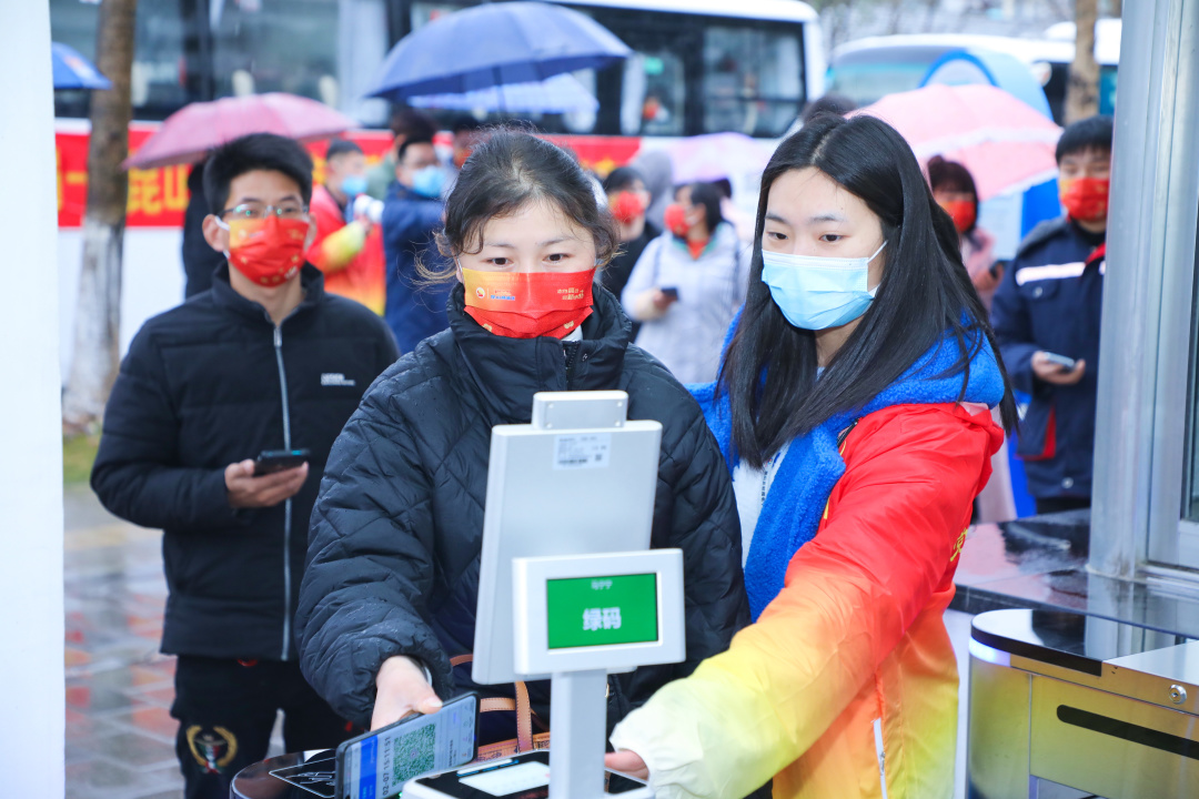 下午三點(diǎn)半,來自河南通許縣的150多位勞動(dòng)者乘坐3輛大巴順利抵達(dá)昆山丘鈦微電子科技股份有限公司。作為節(jié)后第一批來昆就業(yè)的勞動(dòng)者,他們將在昆山工作、生活,并參與到昆山城市建設(shè)、經(jīng)濟(jì)發(fā)展的進(jìn)程中來。在企業(yè)門口,勞動(dòng)者們依次下車,在志愿者引導(dǎo)下,嚴(yán)格按照“一米線”有序排隊(duì),依次通過智能防疫道閘,快速高效完成了信息登記、查驗(yàn)蘇康碼、查驗(yàn)核酸檢測(cè)報(bào)告等流程。從河南通許到江蘇昆山,這一路800多公里,雖然頂風(fēng)冒雪坐了十幾個(gè)小時(shí)的大巴,但是大家的心里都是暖暖的?!敖裉祀m然下雨,但是心里暖暖的。我們剛來就收到了昆山給我們準(zhǔn)備的防疫物資和被子、毛巾等愛心九件套,覺得在這里工作更有勁頭了?!眮碜院幽贤ㄔS縣的齊永愛興奮地告訴記者,新的一年希望能夠在昆山好好工作、多多掙錢,不僅要改善家里生活條件,更要早日實(shí)現(xiàn)買車的新年愿望?!斑@些勞動(dòng)者將在經(jīng)過短期培訓(xùn)后正式上崗,有了這些新生力量,我們企業(yè)趕訂單、促發(fā)展,取得‘開門紅’的信心也更足了?!崩ド角疴佄㈦娮涌萍脊煞萦邢薰救耸滦姓偙O(jiān)樂燕芳說。